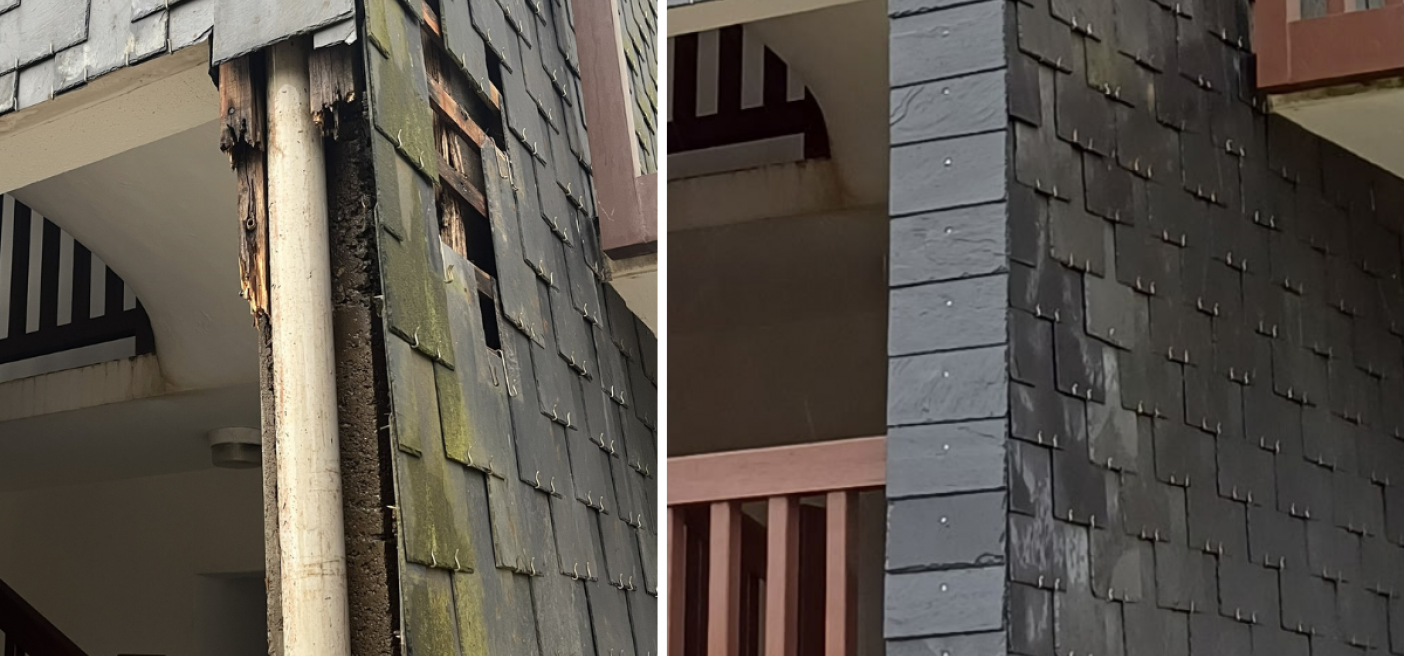 Nous sommes récemment intervenus pour une réparation de bardage et de remise en état du système d’évacuation des eaux pluviales (EP). Cette intervention a permis de sécuriser durablement le bâtiment tout en lui redonnant une esthétique soignée.