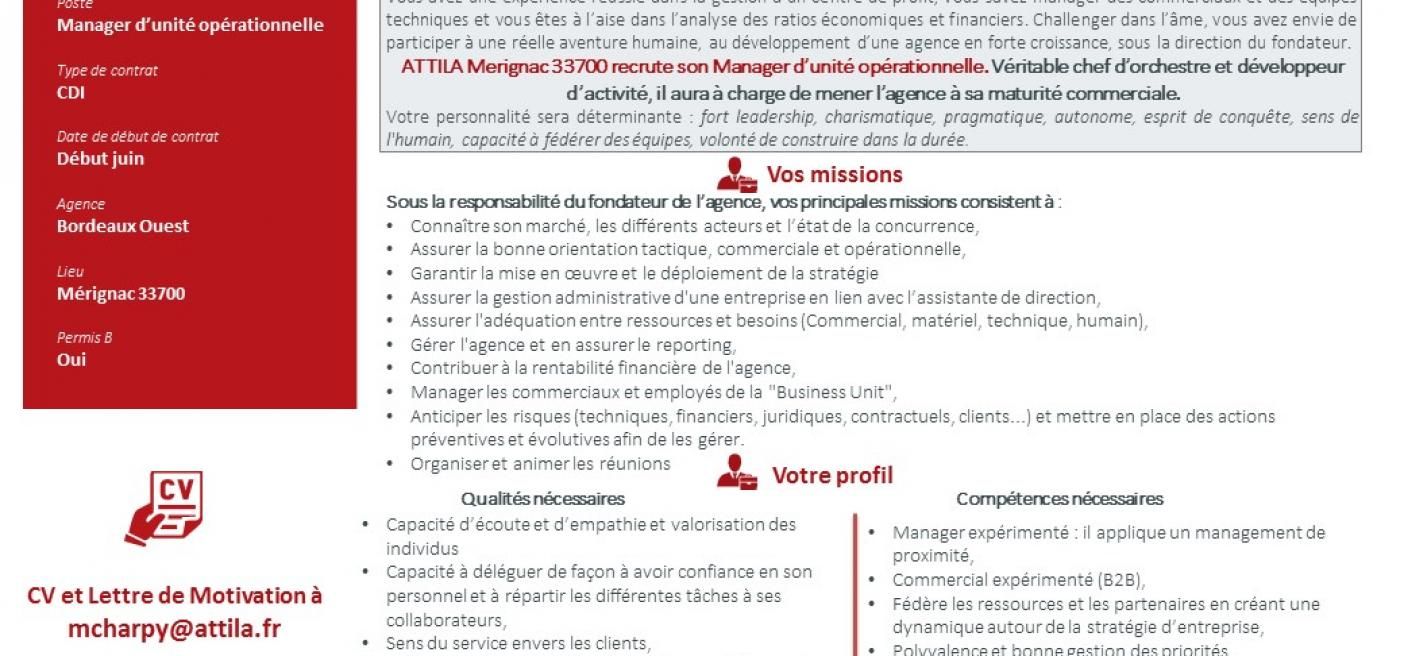 Vous avez une expérience réussie dans la gestion d'un centre de profit, vous savez manager des commerciaux et des équipes techniques et vous êtes à l'aise dans l'analyse des ratios économique et financiers.