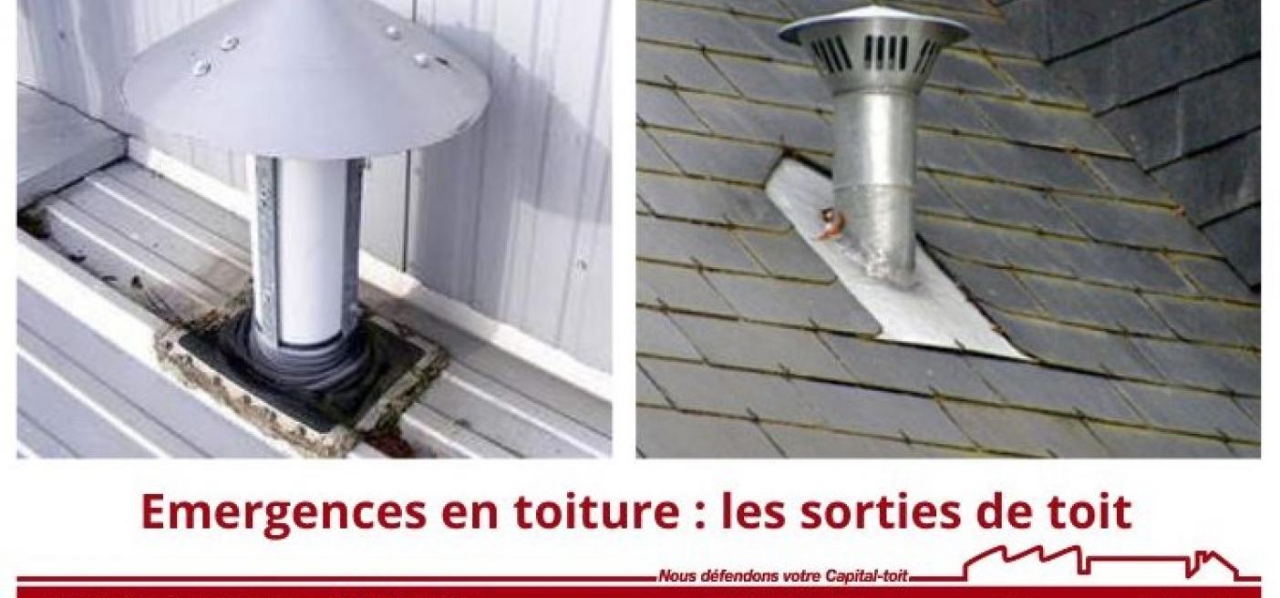 On appelle « sortie de toiture » tout élément qui traverse la toiture et émerge en surface de la partie courante de la couverture. On lui trouve diverses utilisations comme l’installation d’un conduit de cheminée, la ventilation des locaux sous la toiture, ou encore le passage de câbles nécessaires pour l’activité exercée dans le bâtiment (raccordement d’un appareil électrique comme un bloc de climatisation).