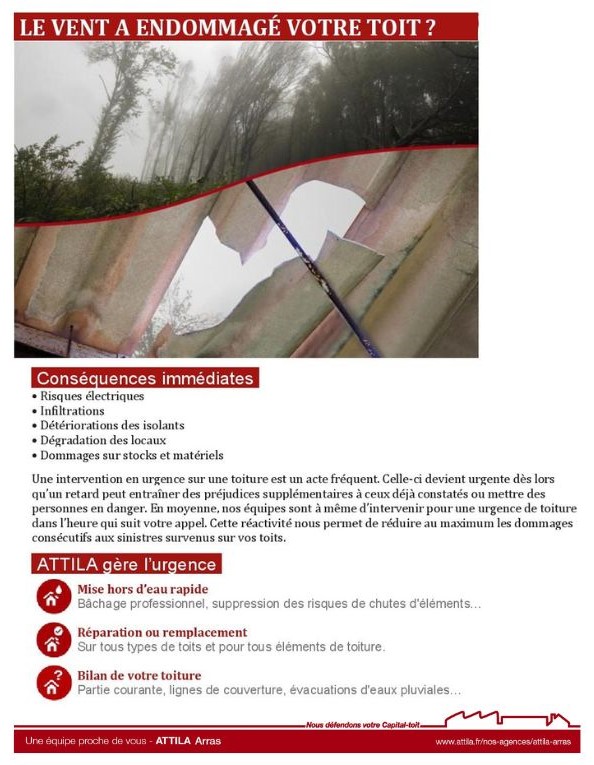 Si l’agence ATTILA ARRAS peut intervenir dans les meilleurs délais sur vos toits pendant ces évènements climatiques exceptionnels, c’est surtout après le passage de cette tempête que des problématiques en toiture peuvent apparaitre.
