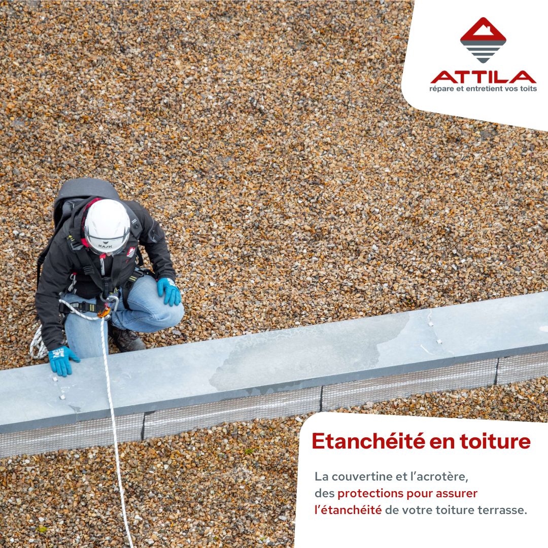 L’acrotère est un élément architectural important pour les toitures terrasse, en particulier en ce qui concerne l'étanchéité et la protection de la structure. La couvertine, également appelée chaperon, est aussi un élément essentiel en toiture, notamment pour les acrotères. Elle est placée au-dessus des murs d'acrotère pour les protéger des intempéries et assurer une bonne étanchéité.