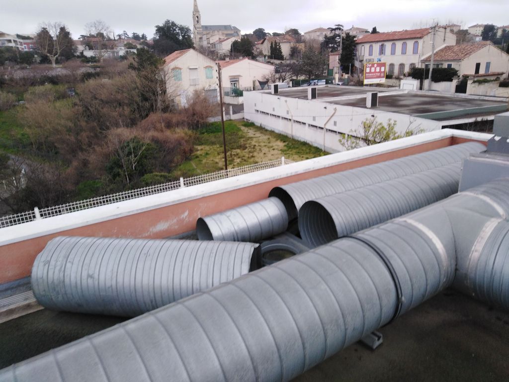 -évacuation d'encombrants (tuyaux évacuation de climatiseurs) non évacués par une société qui était intervenue des mois auparavant, qui à terme risquait de percer la membrane...