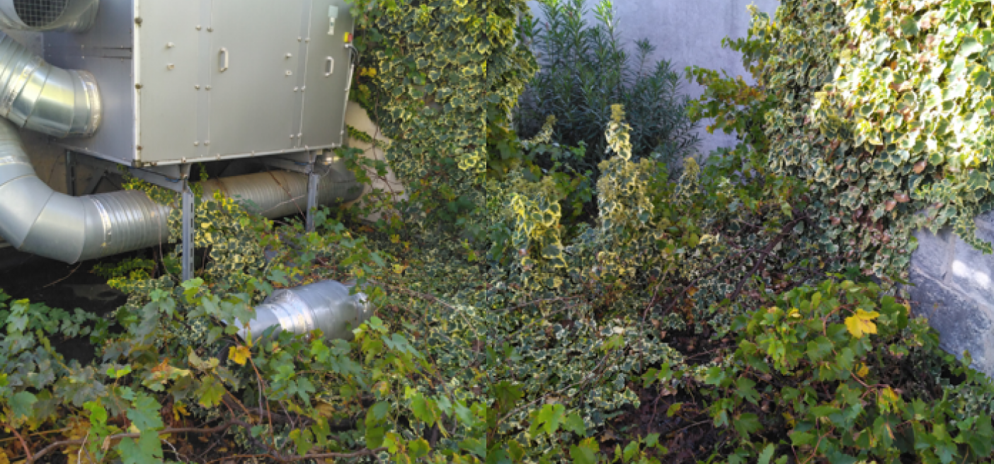 Engorgement des chéneaux : La végétation et les feuilles obstruent les évacuations, provoquant débordements et infiltrations.