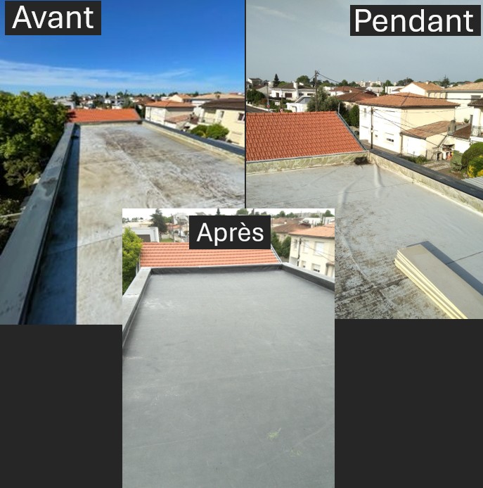 Méthole : Nettoyage, pose de la membrane (collé ou fixée), soudure à froid.