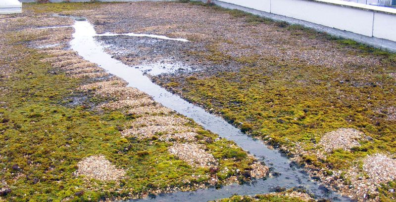 Les mousses et les végétaux qui se forment sur la toiture, puis se développent avec le temps, peuvent s’enraciner dans le revêtement d’étanchéité et causer des infiltrations d’eau. Ils gênent également l’évacuation des eaux de pluie par l’obstruction de la naissance de la descente d’eaux pluviales, ce qui peut avoir de graves conséquences (débordements, surcharge sur la structure du bâtiment). De même, les désordres occasionnés par les intervenants en toit-terrasse, ceux causés par la nature et les conditions météorologiques (neige, pluie,etc), ceux provenant de projectiles divers ou encore des déjections de volatiles, doivent être traités dans les meilleurs délais. Nous entendons par désordre, tout problème pouvant causer des troubles à la toiture et impacter sa fonction première, qui est d’étancher.