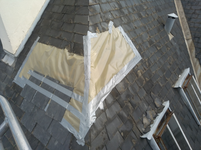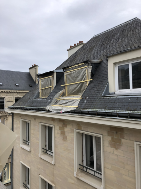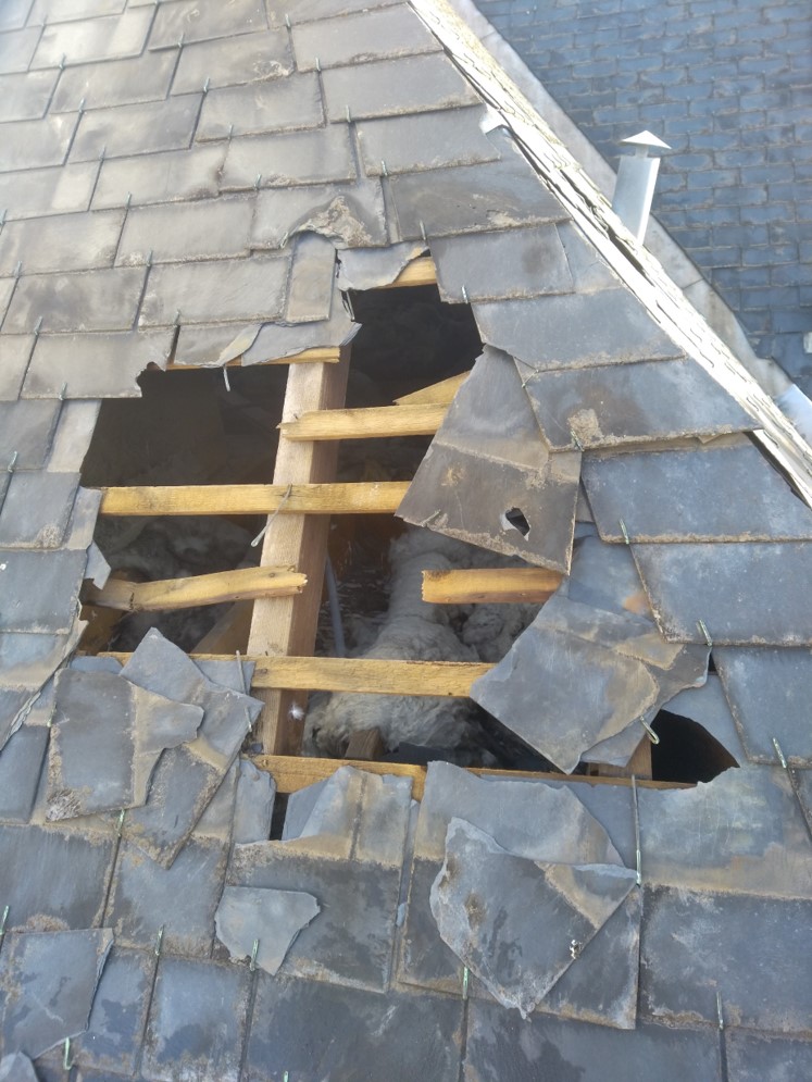 Après le passage des soldats du feu, les techniciens de toiture Attila CAEN sont intervenus rapidement grâce à l’un de nos camions nacelle pour effectuer des réparations conservatoires malgré la charpente très endommagée. La chute de débris et la mise hors d’eau sont maintenant sous contrôle. Reste à planifier les travaux de remise en état après le passage des experts…