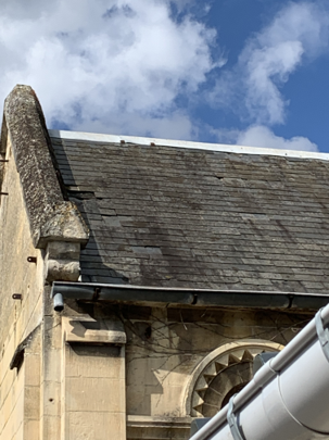 Au fil des ans, les matériaux de toiture se dégradent, les points singuliers comme les rives ou le faitages sont souvent les premiers touchés. Les infiltrations apparaissent et peuvent endommagées la charpente comme pour cette église.