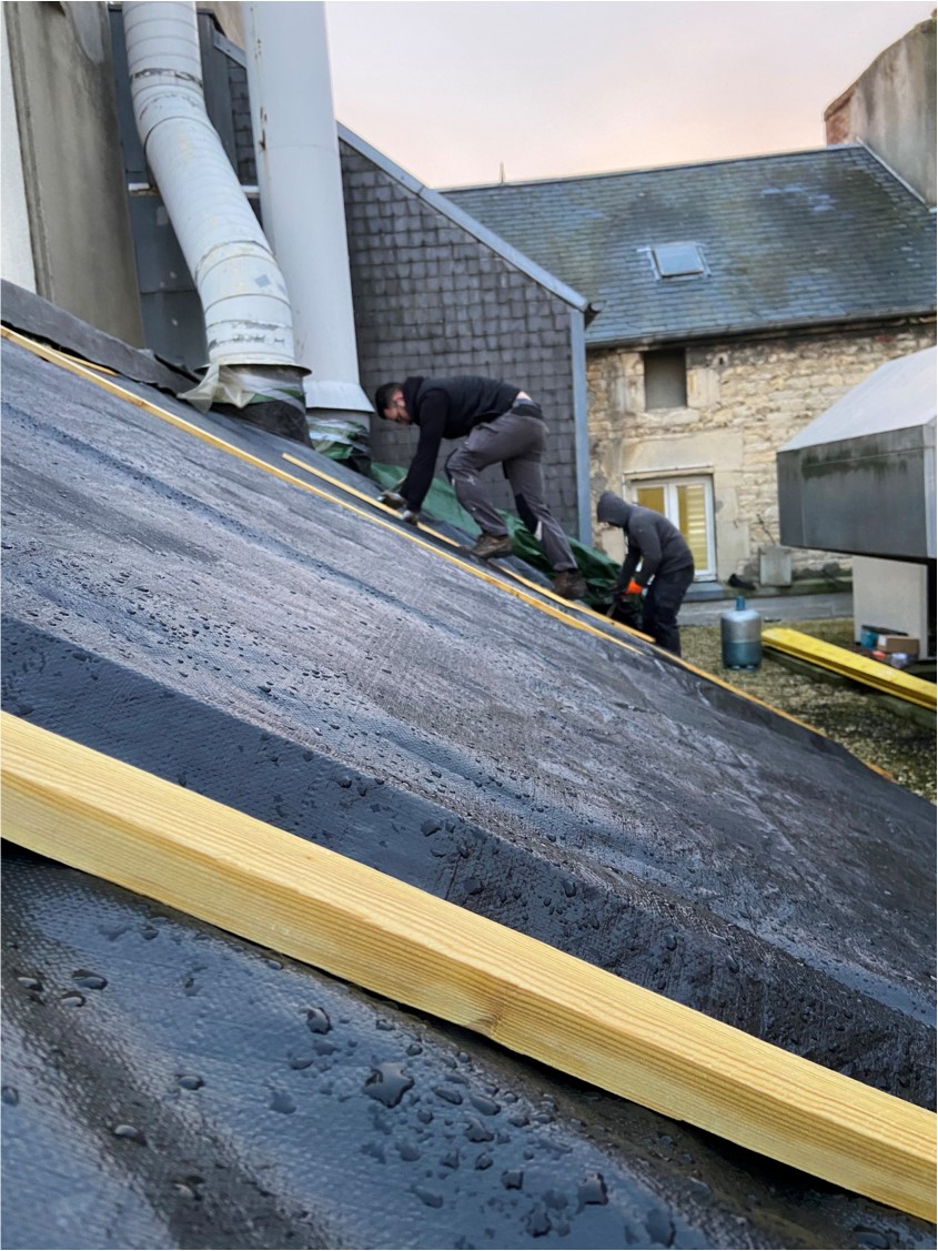 Comment intervenir pour rénover une toiture enclavée au 6ème étage en plein centre ville et zone piétonne ? …………………………………………………. Avec une équipe de choc de nuit !