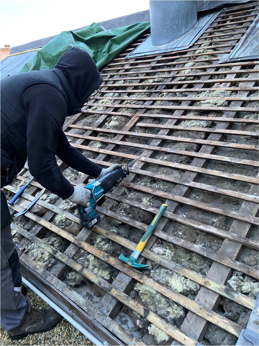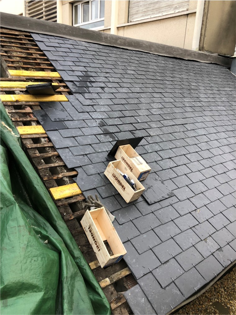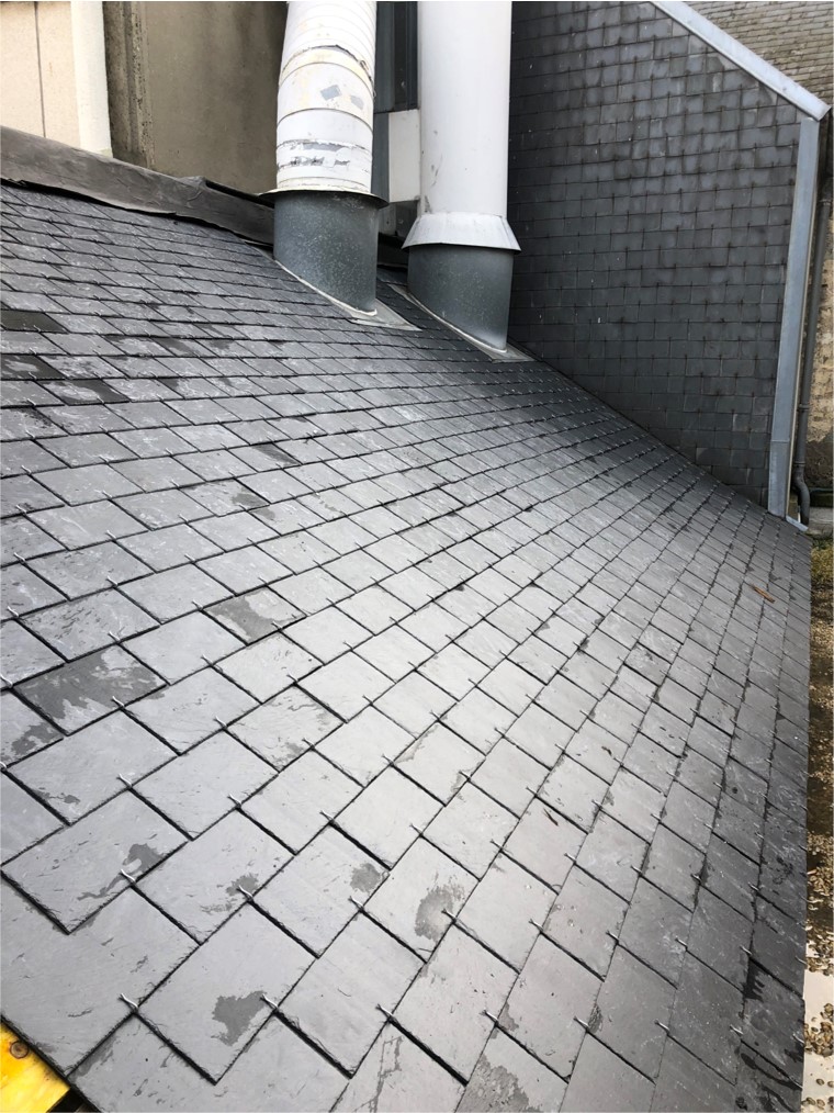 Notre client avait des problèmes d’infiltrations récurrentes sur cette toiture en ardoises naturelles au niveau de vétusté très avancé.