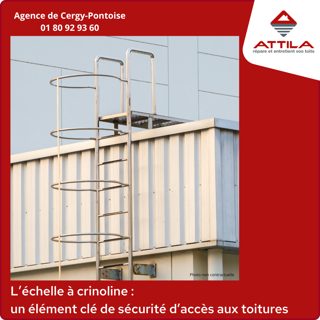 Si vous avez besoin d’une solution en adéquation avec vos besoins, faites appel à l’agence ATTILA CERGY PONTOISE qui réalise avec vous la réflexion préalable à l’installation de cet équipement conséquent. Ce dispositif ajouté à la toiture doit répondre à la norme française NF-E 85 016 et à la norme européenne NF ISO EN 14 122, qui portent sur les accès en toiture des bâtiments. Pour respecter ces normes en vigueur, nous pouvons envisager une mise en conformité, voire un remplacement complet de l’équipement, afin de renforcer la sécurité permanente des moyens d’accès aux bâtiments.