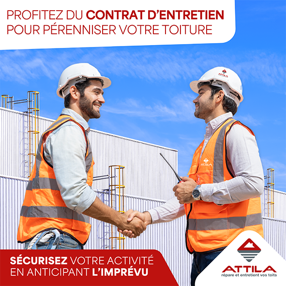 Pour répondre à toutes ces questions, votre agence ATTILA Clermont-Ferrand vous propose un contrat d’entretien, sans engagement, où est répertorié l’ensemble des points nécessaires à la bonne conduite de l’entretien de votre toit.