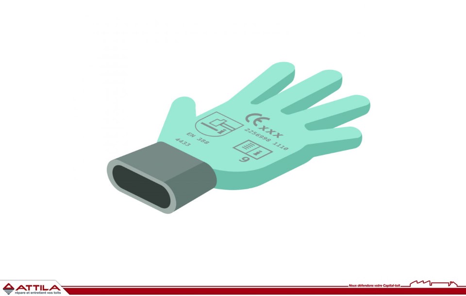 Les mains de nos Techniciens de Toiture ATTILA sont soumises chaque jour à des dangers. Dans le secteur du bâtiment, 26% des accidents avec arrêts concernent les mains, dont 8% font l’objet d’une incapacité permanente. Il est donc indispensable de porter des gants adaptés qui protègent les mains et les avant-bras de manière optimale afin de prévenir les risques liés à la manipulation : abrasion, brûlures, coupures, écrasements, irritations…