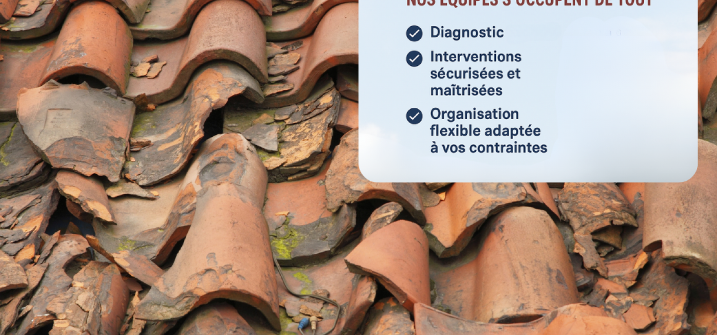 Sur votre toiture, un certain nombre de dégâts peuvent survenir : fuite, infiltration, tuile déplacée après une tempête… Ils sont rarement soudains, et sont le plus souvent le résultat d’une dégradation progressive, invisible depuis le sol.