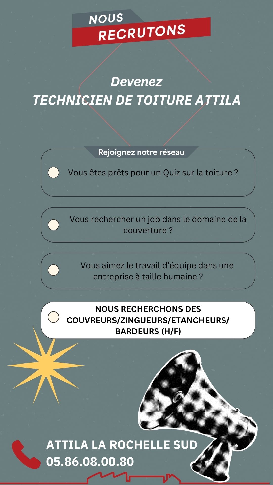 ATTILA LA ROCHELLE SUD : QUIZ RECRUTEMENT COUVREURS/ZINGUEURS (H/F)