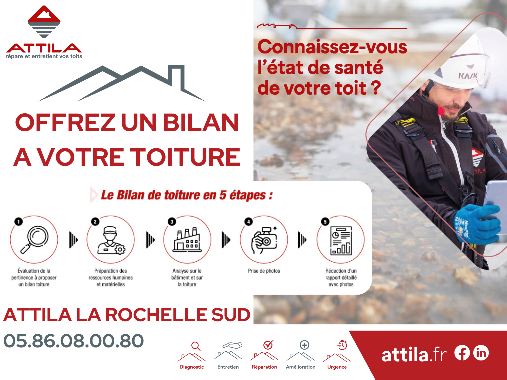 C’est pourquoi, l’agence ATTILA LA ROCHELLE SUD vous propose de réaliser un bilan toiture.