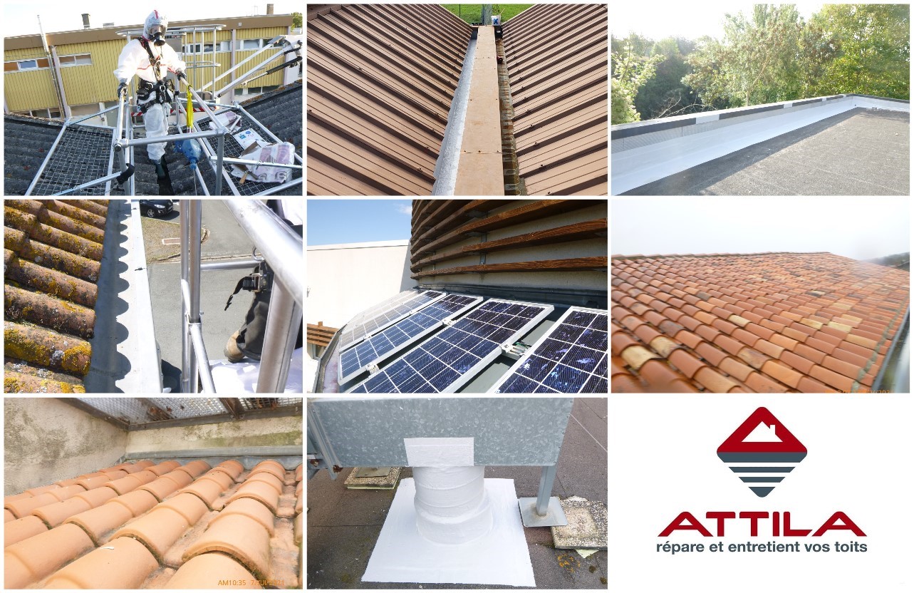 ATTILA est le 1er réseau national spécialisé dans la réparation, l’entretien et la maintenance de tous les types de toits, qu’ils soient industriels, traditionnels, en terrasse ou amiantés.