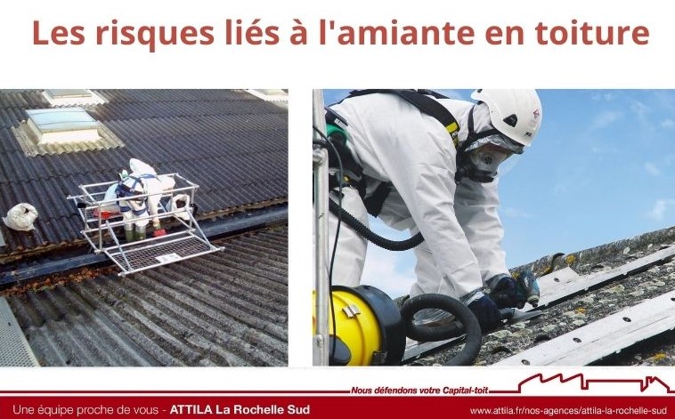 Quels sont les risques : l’inhalation de l’amiante des toitures peut provoquer de graves maladies respiratoires. De 400 à 500 fois moins épaisses qu'un cheveu, les fibres d'amiante, invisibles dans les poussières de l'atmosphère, se déposent au fond des poumons. Elles peuvent alors provoquer des maladies bénignes comme les plaques pleurales ou graves comme les cancers des poumons et de la plèvre, et les fibroses. Ces maladies se déclarent en moyenne 20 à 40 ans après le début de l’exposition. C’est pourquoi, toute intervention sur une toiture amiantée nécessite de faire appel à des professionnels doublement formés comme l’agence ATTILA LA ROCHELLE SUD : certification amiante en Sous-Section 4 (SS4) et intervention en hauteur.