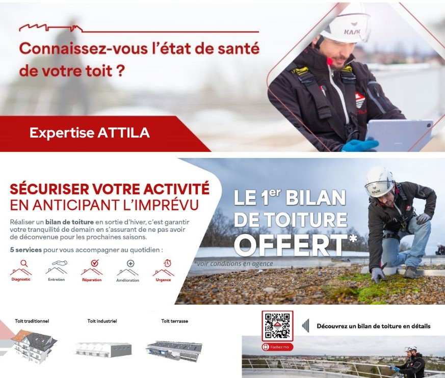 En ce moment, l’agence ATTILA LA TOUR DU PIN vous offre* votre premier bilan de toiture.