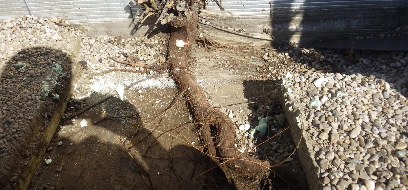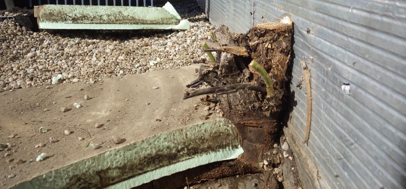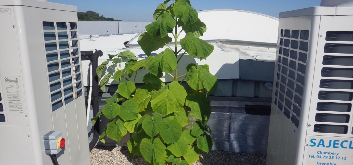 Un arbre pousse sur le toit d'une entreprise, heureusement il a pas trop abimé l'étanchéité.