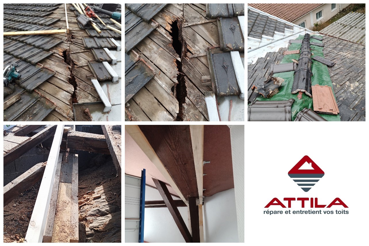 Suite à cette intervention d’urgence, les équipes ont réalisé la deuxième partie de l’intervention en renforçant la charpente porteuse qui avait été fortement détériorée à cause des fuites occasionnées. Cette prestation se réalise dans le respect des matériaux de couverture, dans les règles de l’art et en toute sécurité.