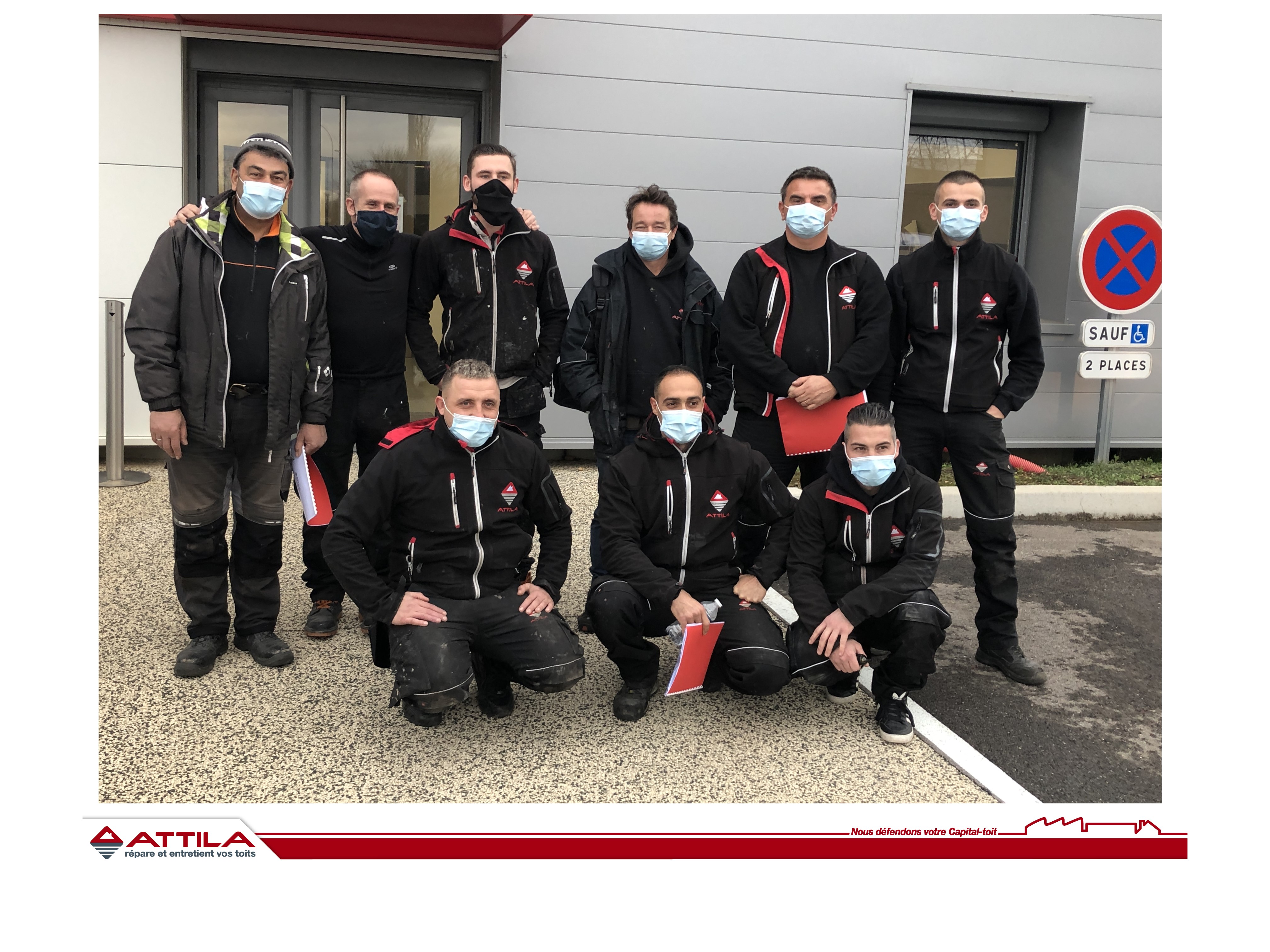 C’est pourquoi, l’ensemble des Techniciens de Toiture des agences ATTILA LYON SUD situées à Chassieu et à Grigny se sont rendus à une formation ATTILA sur le travail « sans la flamme » le 14 janvier dernier au centre de Formation du réseau. Les sujets comme la sécurité sont bien entendu abordés pour travailler sur le comportement de chacun lors des interventions, mais aussi l’apprentissage et la mise en application de procédés techniques pour appliquer par exemple la résine et la membrane d’étanchéité…à froid !