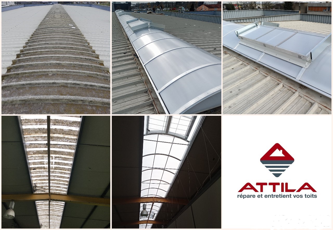 Comme lors de cette intervention où les Techniciens de Toiture ATTILA ont remplacé une voute de 35 m linéaire sur le toit du bâtiment industriel de cette entreprise. Nous nous attachons à maintenir étanches et en bon état le plus longtemps possible tous ces éléments liés à votre toit. Ils doivent remplir parfaitement leurs fonctions, et être sans danger pour le bâtiment et ses occupants.