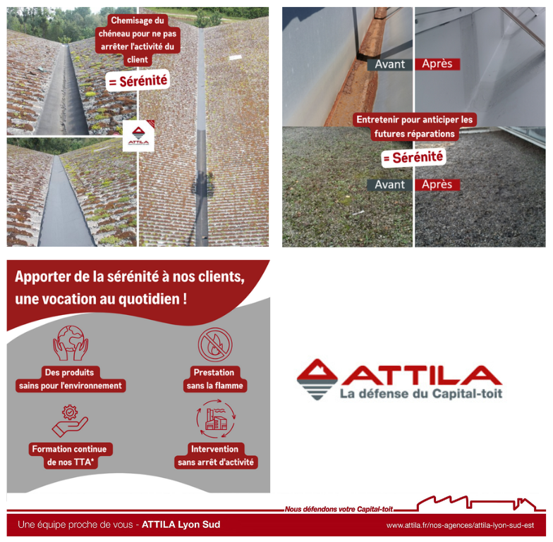 ATTILA est le 1er réseau national spécialisé dans la réparation, l’entretien et la maintenance de tous les types de toits, qu’ils soient industriels, traditionnels, en terrasse ou amiantés.