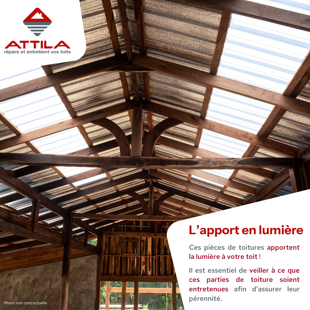Si ce n’est pas le cas, pourquoi ne pas intégrer des plaques translucides sur votre toiture ? Nos Techniciens de Toiture ATTILA sont des experts parfaitement qualifiés pour réaliser cette opération. Nous posons vos translucides en toiture et tout au long de leur vie nous en prenons soin grâce à de l’entretien et de la réparation. Ainsi vous évitez qu’ils ne s’abiment trop, ou que leur opacité ne vienne entacher leur efficacité.