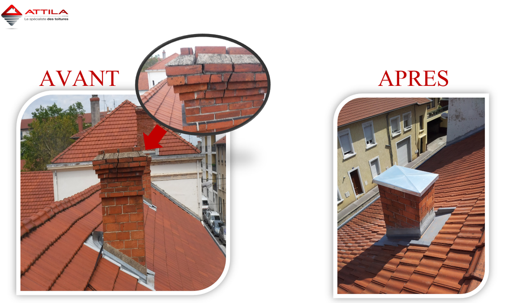 L’agence ATTILA LYON SUD vous présente l’un de ces derniers chantiers. Sécurisation d'une tête de cheminée fendue et réfection des caniveaux a la Nantaise .