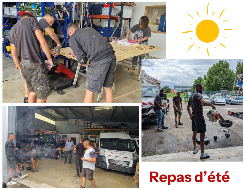 Et comme les collaborateurs de l’agence ont l’habitude de travailler ensemble, c’est une nouvelle fois dans la solidarité et l’entraide qu’ils ont organisé leur déjeuner : confection d’une table, préparation et cuisson du barbecue, mise en place du repas…tous ont participé avant de savourer l’instant où la bonne humeur était bien présente. Il faut dire qu’entre le départ tôt sur les chantiers, les rendez-vous à l’extérieur et la partie administrative au bureau, les équipes se croisent le reste du temps, et c’est bien agréable de pouvoir enfin se poser tous réunis à la même table.