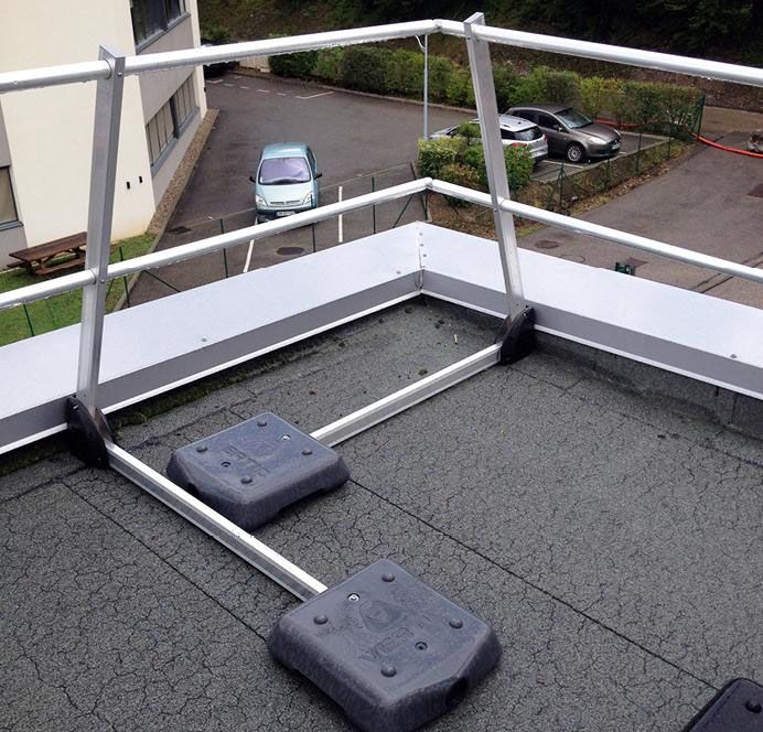 - Garde-corps : Ces équipements sont installés sur des toitures dites inaccessibles. Leur premier objectif est d’éviter la chute de hauteur mais ils permettent également de limiter une zone de travail dite à risque.