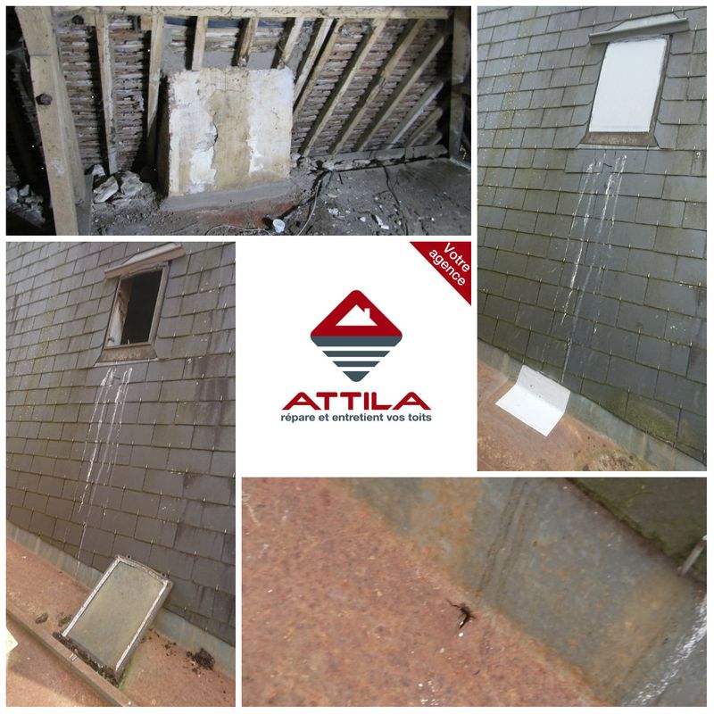 Enfin, sur un pan de toiture, une fenêtre est tombée et a endommagé l’étanchéité en un point qu’il fallait absolument réparer par crainte d’infiltrations et donc de fuites à venir.