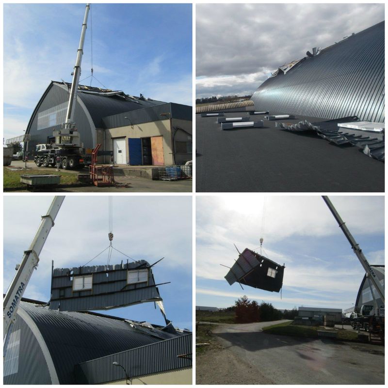 Un gros coup de vent très localisé a arraché un morceau de leur toit. Cette partie s’est retournée sur l’autre pan du bâtiment, menaçait de se détacher, et de tout endommager sur son passage et à l’atterrissage.