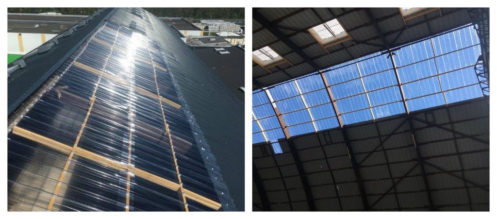 Elle permettra à la zone d’être complètement étanche et de protéger les collaborateurs et les machines à l’intérieur. C’est après le passage des experts en assurance, que pourront être exécutés les travaux de réparation nécessaires et définitifs. C’est un beau puits de lumière qui pendant ce temps éclairera la production.