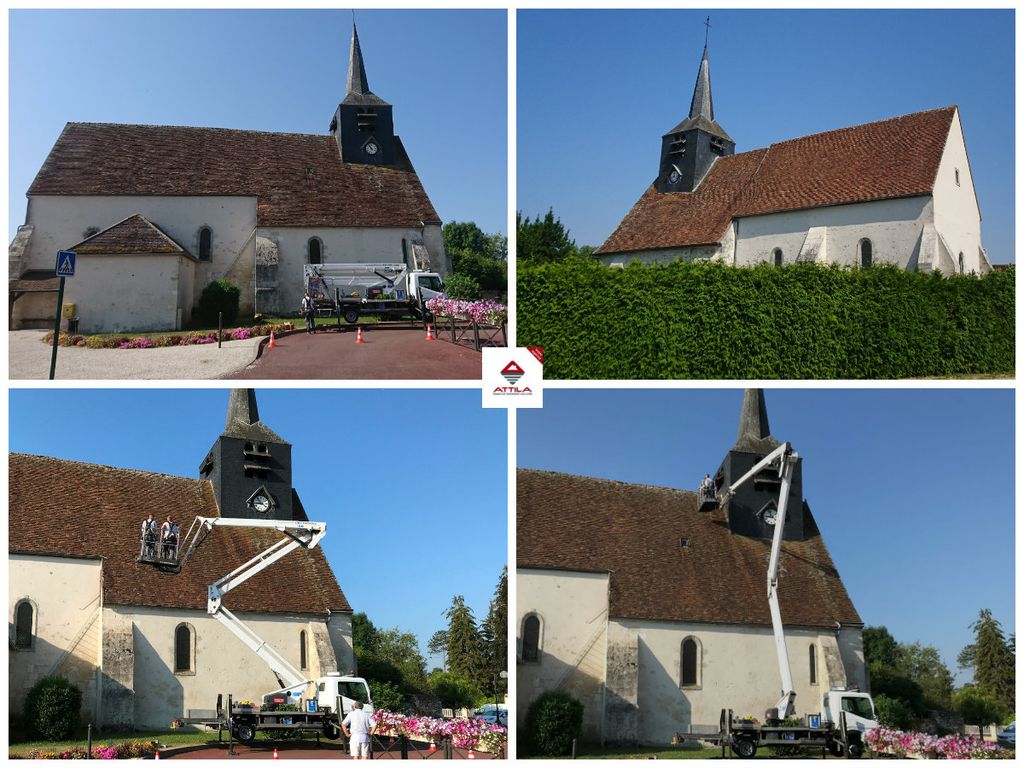 Les Techniciens ATTILA de l’agence de MONTARGIS sont intervenus sur l’église d’ADON, charmante commune du Loiret. Ils ont fait des réparations sur quelques trous de l’église, et plus particulièrement sur les rives du clocher en ardoise.