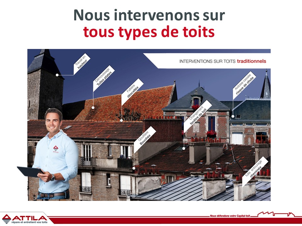 Vous êtes en lien avec un interlocuteur unique pour la gestion globale de vos toits et en sécurité permanente. La proximité avec nos clients nous permet réactivité et professionnalisme grâce à nos Techniciens de Toiture ATTILA, formés en continue pour répondre à l’ensemble de vos demandes et problématiques.