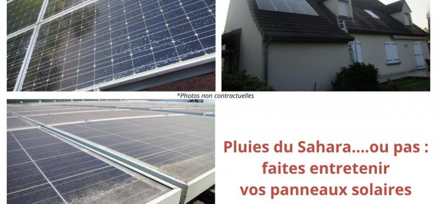 Après un passage de pluie du Sahara, les panneaux solaires peuvent être recouverts de poussière, de sable et de particules fines transportées par le vent. Cette accumulation de saleté peut réduire l'efficacité des panneaux photovoltaïques en bloquant une partie de la lumière solaire et en réduisant ainsi la production d'électricité.