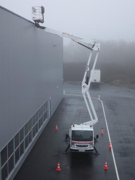 ATTILA Nantes Ouest et son camion nacelle intervient sur grande hauteur et tout accès difficiles. Propriétaire de notre camion nacelle, cela nous permet une intervention rapide et efficace. Grande hauteur 24 m et 10 m de déport.