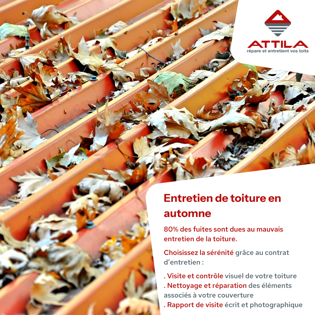 Durant l’automne si vous rencontrez un problème sur votre toit, faites appel à ATTILA. Nos équipes de techniciens de toiture ATTILA interviennent sur tous les types de toiture, industrielle, terrasse, traditionnelle.