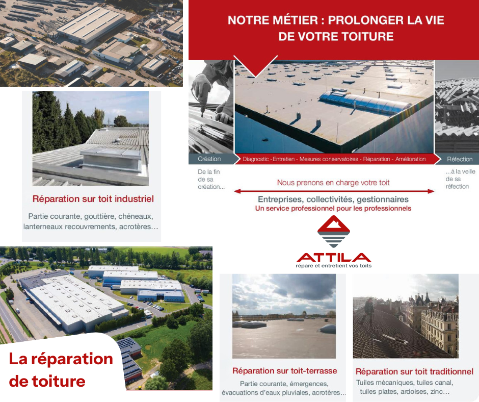 ATTILA est le 1er réseau national spécialisé dans la réparation, l’entretien et la maintenance de tous les types de toits, qu’ils soient industriels, traditionnels, en terrasse ou amiantés.