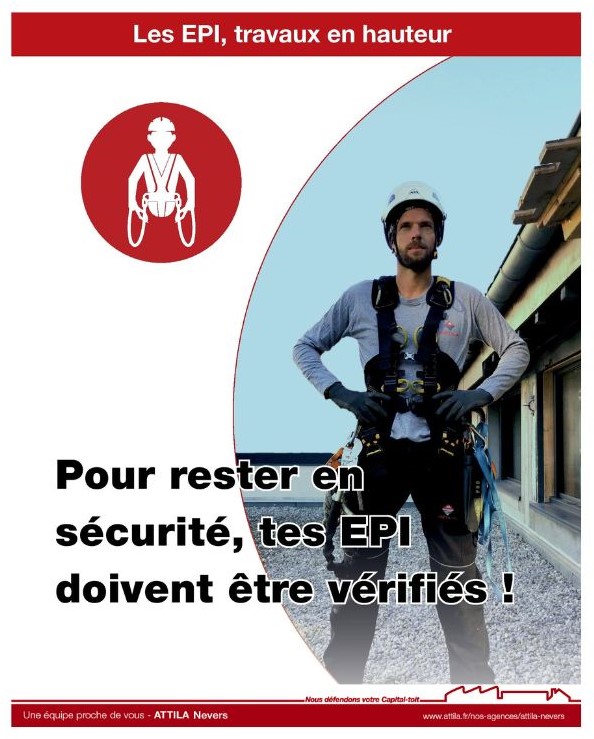 A l’agence ATTILA NEVERS nous fournissons à nos collaborateurs un ensemble d’équipements de Protection Individuelle rigoureusement aux normes, et contrôlés régulièrement. Ils protègent nos équipes contre les risques liés à notre activité. L’EPI constitue le dernier rempart entre le salarié et le danger susceptible de menacer sa santé ou sa sécurité au travail. Il ne réduit pas la probabilité que ce risque survienne, mais il en diminue la gravité. Les EPI doivent être adaptés aux risques identifiés, et font l’objet de vérifications périodiques.
