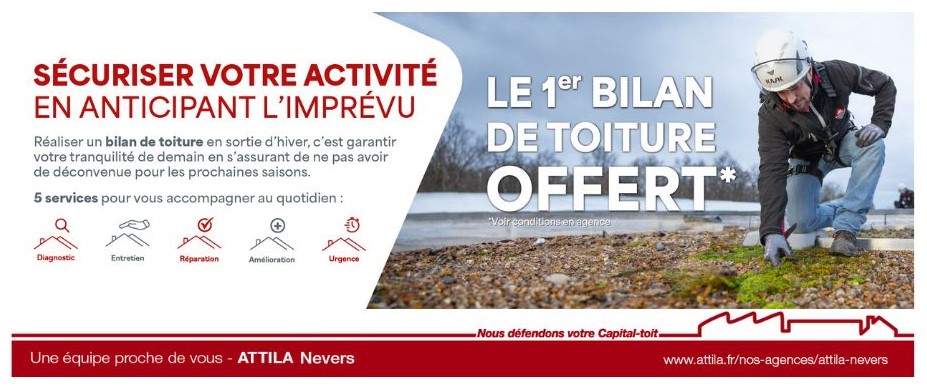 En ce moment, l’agence ATTILA NEVERS vous offre** votre premier bilan de toiture.