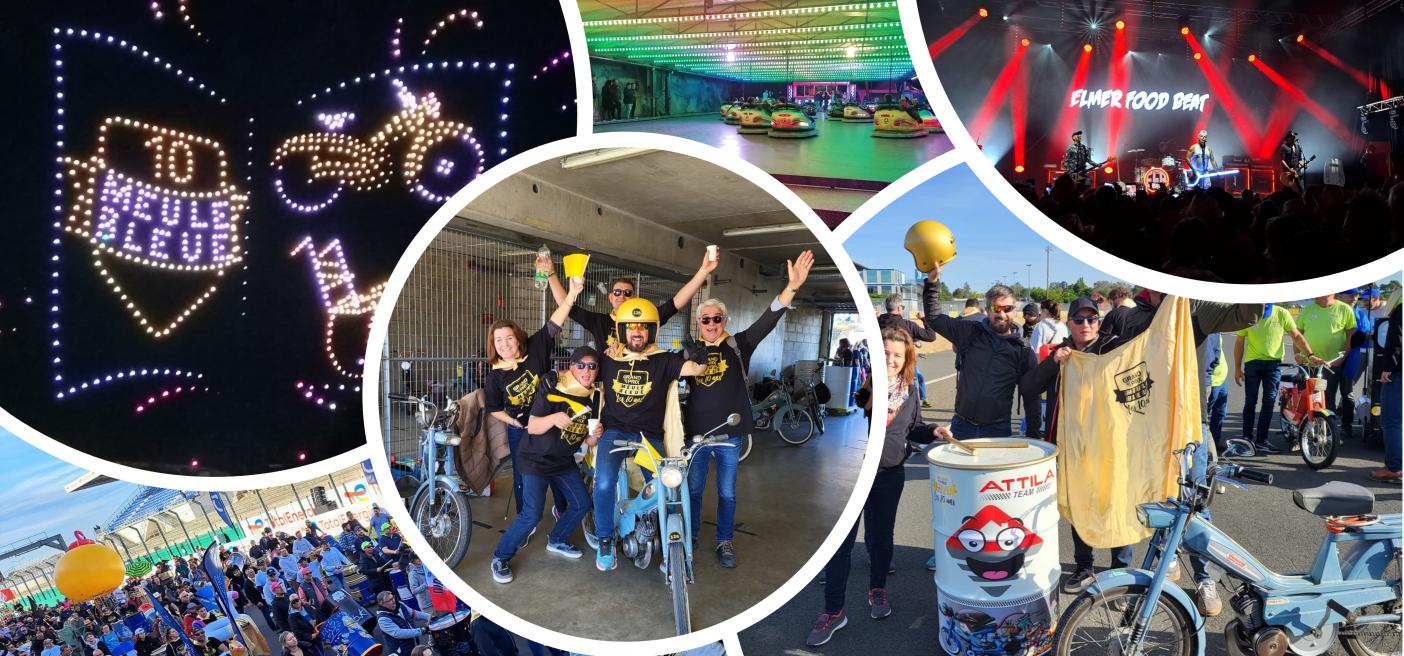 Durant ce week-end, nous nous sommes réunis pour partir en direction du Circuit Bugatti au Mans, avec nos mobylettes, munis de nos tee-shirt collectors, notre cape et casque ainsi que notre bidon customisé aux couleurs d’Attila.