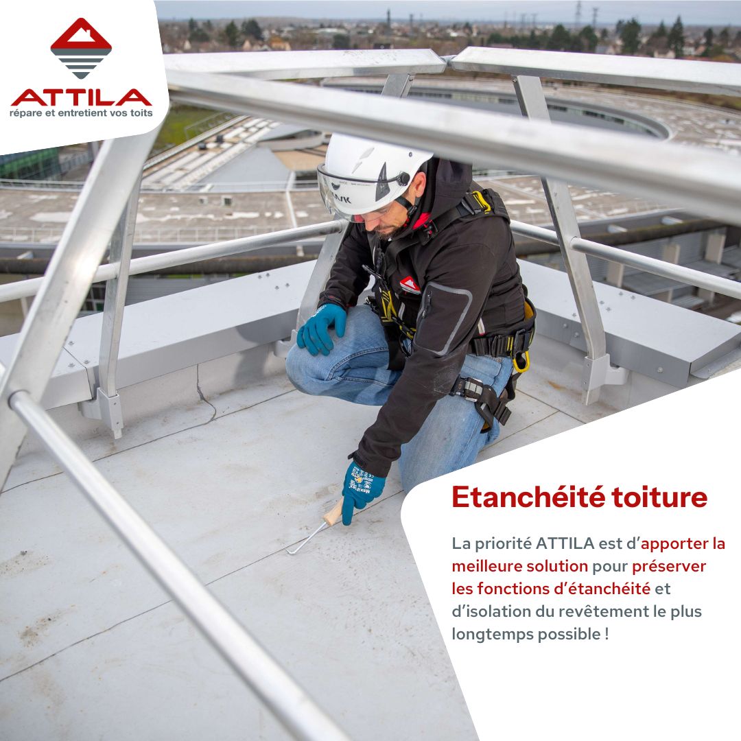ATTILA est le 1er réseau national spécialisé dans la réparation, l’entretien et la maintenance de tous les types de toits, qu’ils soient industriels, traditionnels, en terrasse ou amiantés.