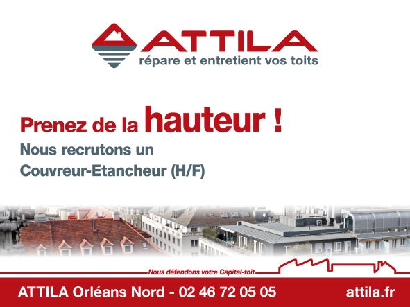ATTILA ORLEANS NORD RECRUTE UN COUVREUR/ETANCHEUR (H/F)