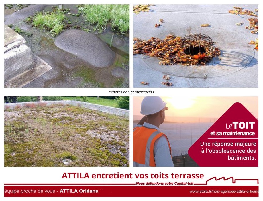 Chaque jour, nous protégeons votre toiture contre les agressions climatiques et mécaniques. La toiture terrasse, considérée comme la 5ème façade du bâtiment, doit bénéficier de la même exigence de qualité que les autres façades. C’est pourquoi nous considérons son entretien comme une obligation vis-à-vis de l’ensemble de la structure.Pour l’entretien de ces toits, ATTILA se réfère aux « Document Technique Unifié » (DTU) propres aux types de terrasses.