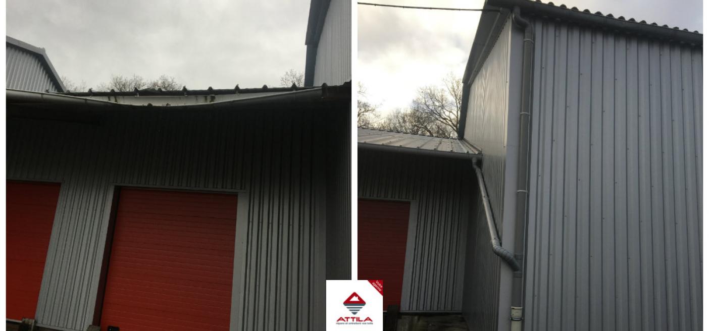 L’agence ATTILA ORLEANS NORD a réalisée une intervention sur une maison avec toiture en bac acier, qui consistait à remplacer une gouttière défectueuse ainsi que la descente d’eaux pluviales qui y est rattachée.