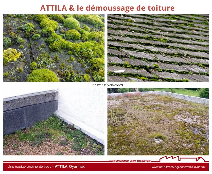 Pour tous vos travaux en toiture, faites appel à des professionnels comme l’agence ATTILA OYONNAX pour vous débarrasser de vos mousses et autres indésirables en toiture. En effet, incrustés sur les couvertures ils prolifèrent, détériorent et provoquent des dommages sur vos toitures.