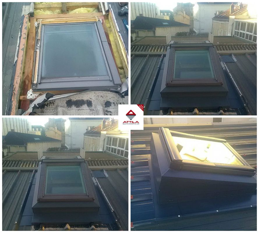 Lors de cette intervention, l’agence ATTILA PERIGUEUX a dû adapter la fenêtre de toit à une couverture métallique.