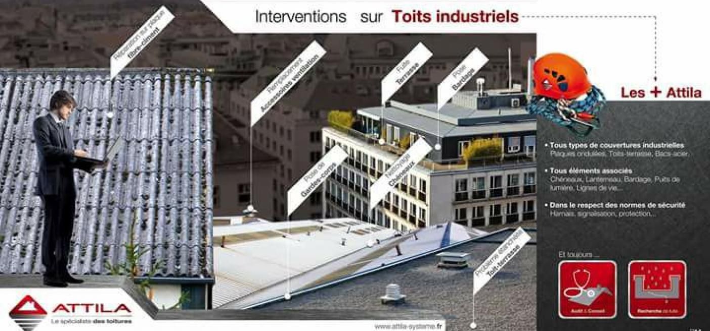Interventions sur toits industriels.